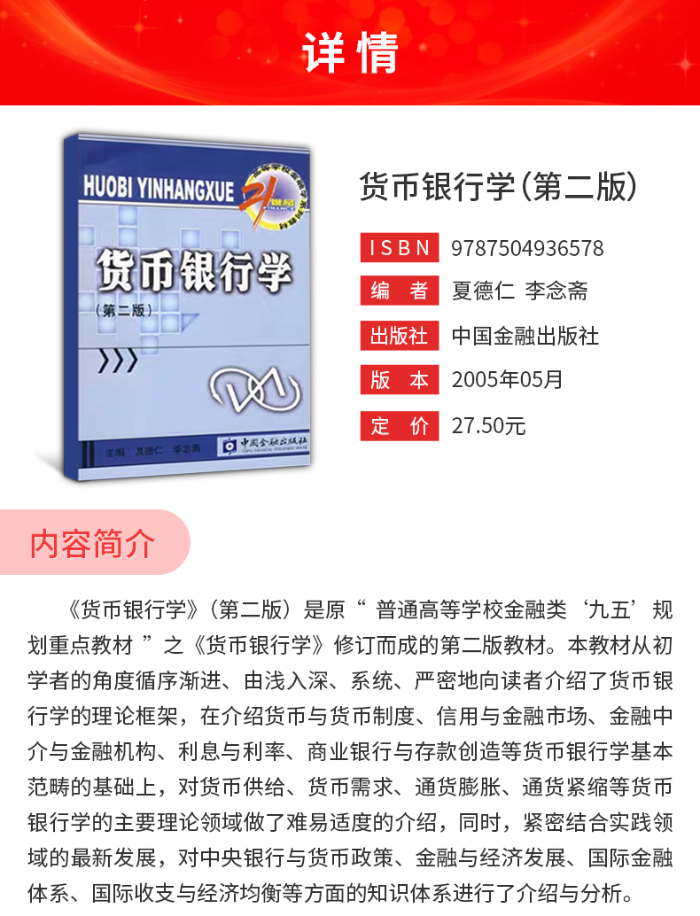 夏德仁《货币银行学》(第2版)教材(中国金融出版社)