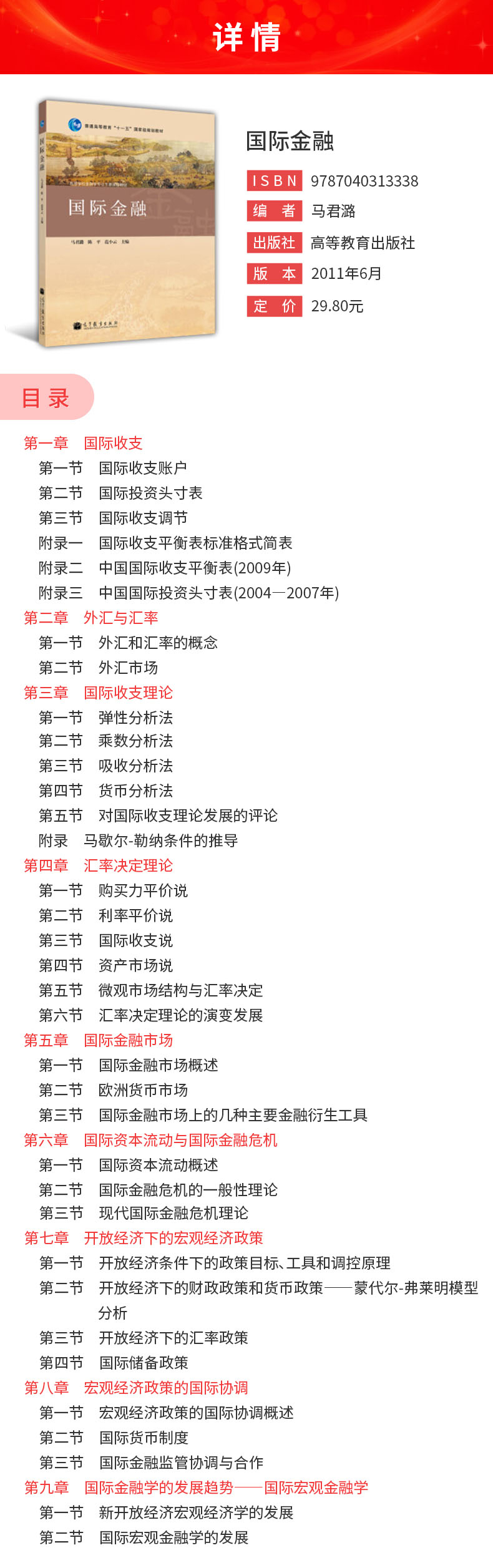 马君潞《国际金融》教材(高等教育出版社)