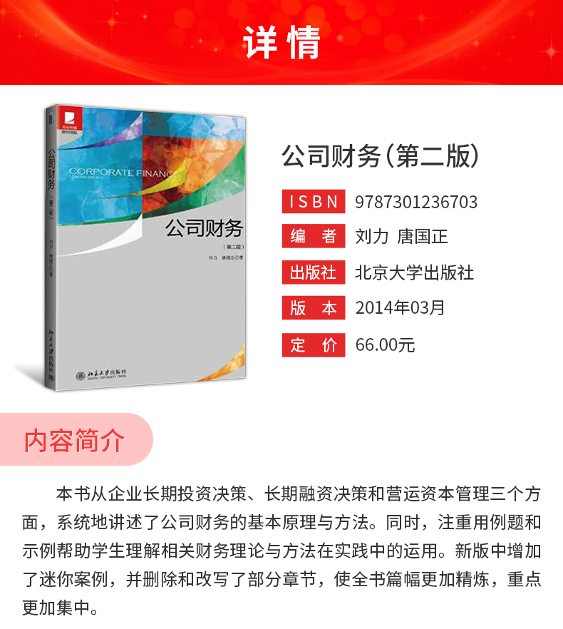 刘力《公司财务》(第2版)教材(北京大学出版社)