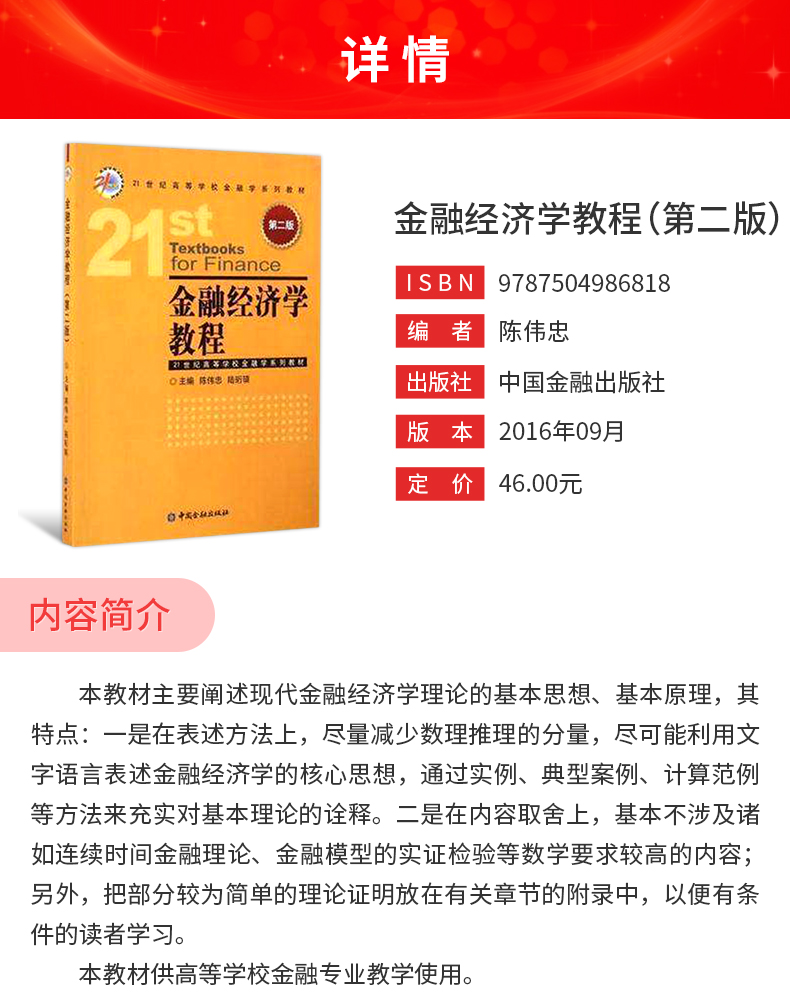 陈伟忠《金融经济学教程》(第2版)教材(中国金融出版社)