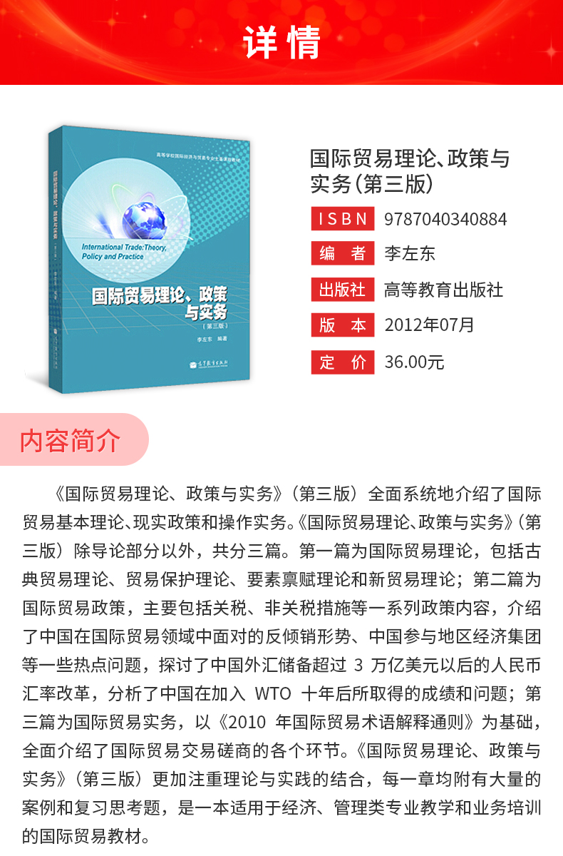 李左东《国际贸易理论、政策与实务》(第3版)教材(高等教育出版社)