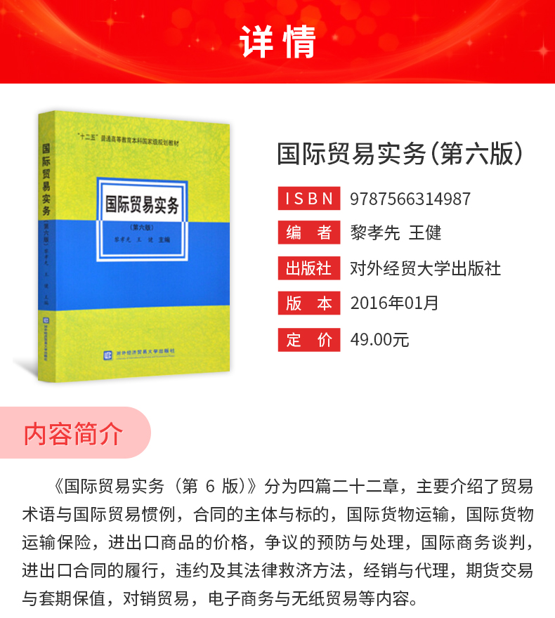 黎孝先《国际贸易实务》(第6版)教材(对外经济贸易大学出版社)