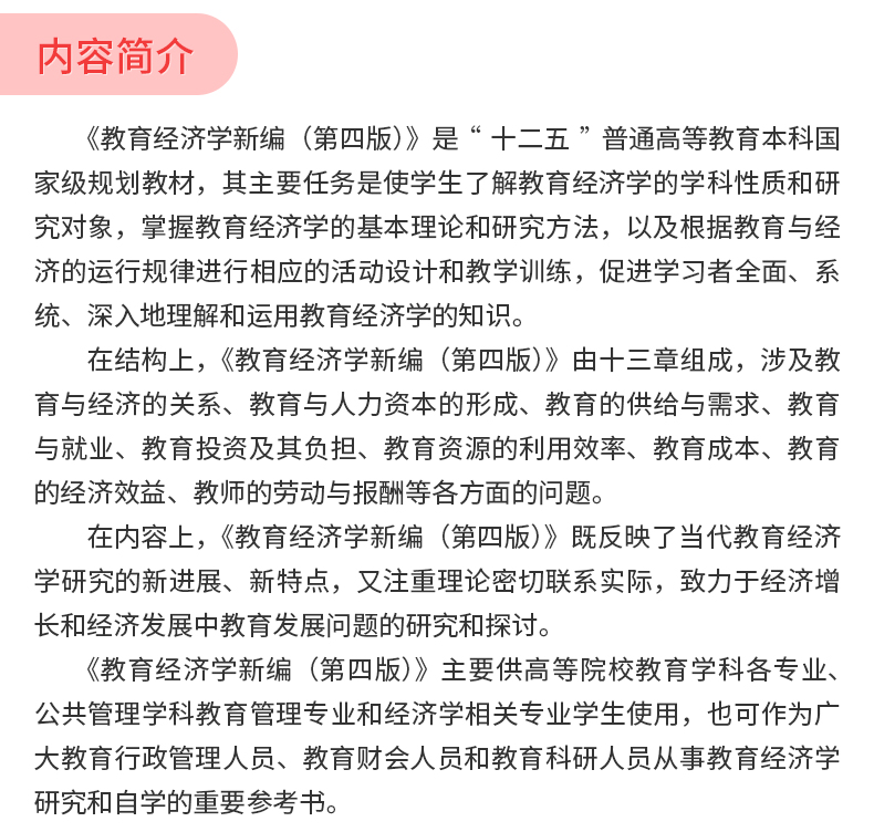 范先佐《教育经济学新编》(第4版)教材(人民教育出版社)