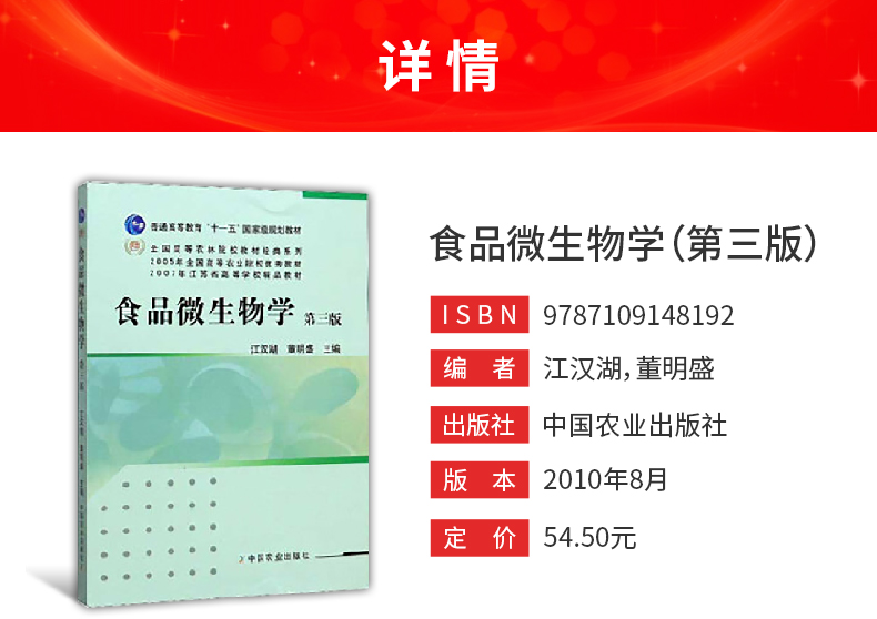 江汉湖《食品微生物学》(第3版)教材(中国农业出版社)