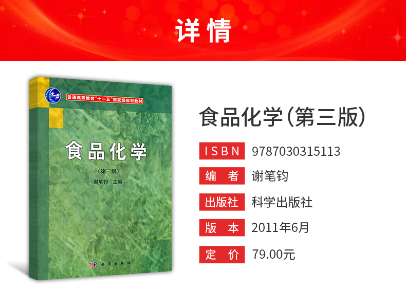 谢笔钧《食品化学》(第3版)教材(科学出版社)