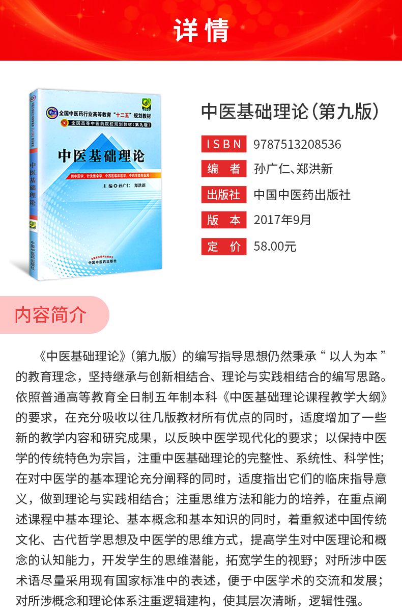 孙广仁《中医基础理论》(第9版)教材(中国中医药出版社)