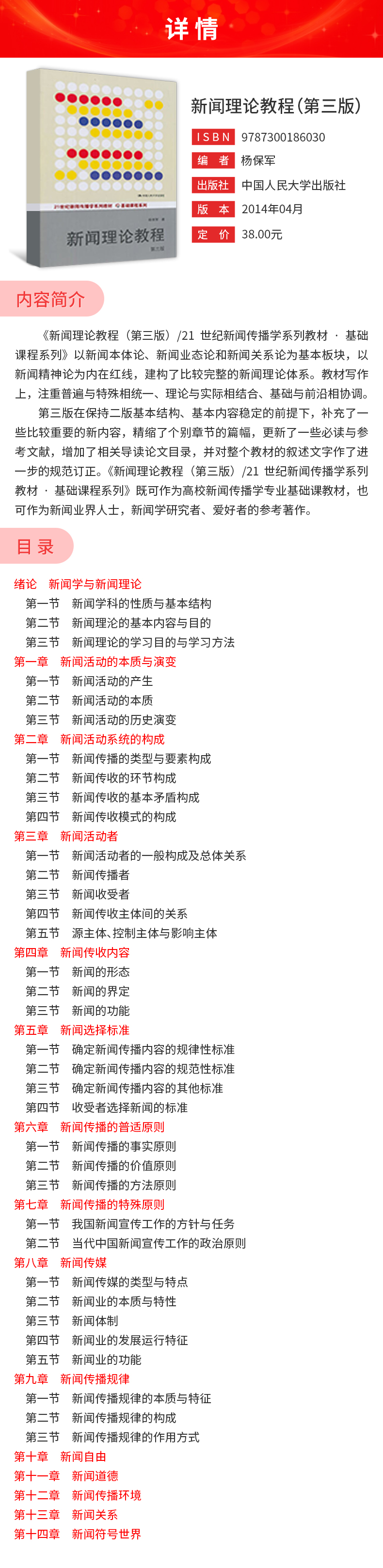 杨保军《新闻理论教程》(第3版)教材(中国人民大学出版社)