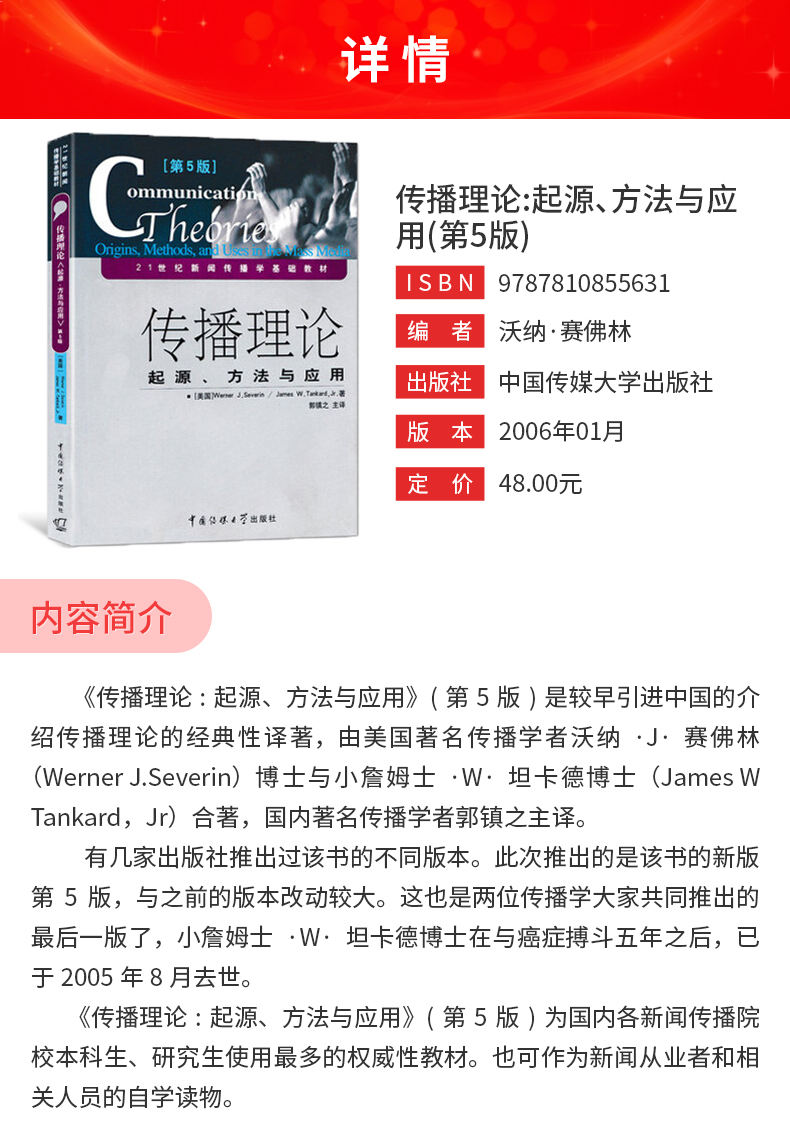 沃纳•赛佛林《传播理论:起源、方法与应用》(第5版)教材(中国传媒大学出版社)