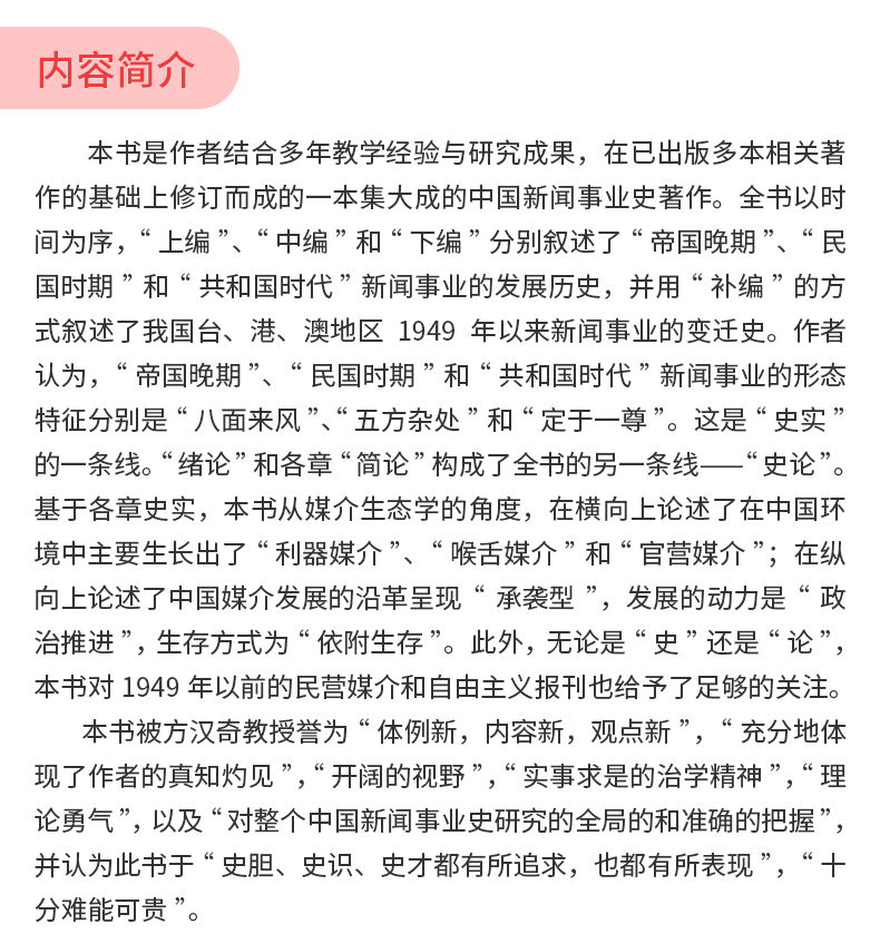 吴廷俊《中国新闻史新修》教材(复旦大学出版社)