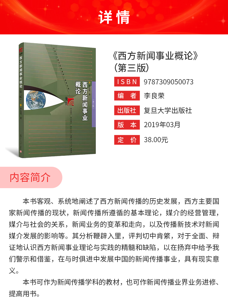 李良荣《西方新闻事业概论》(第3版)教材(复旦大学出版社)