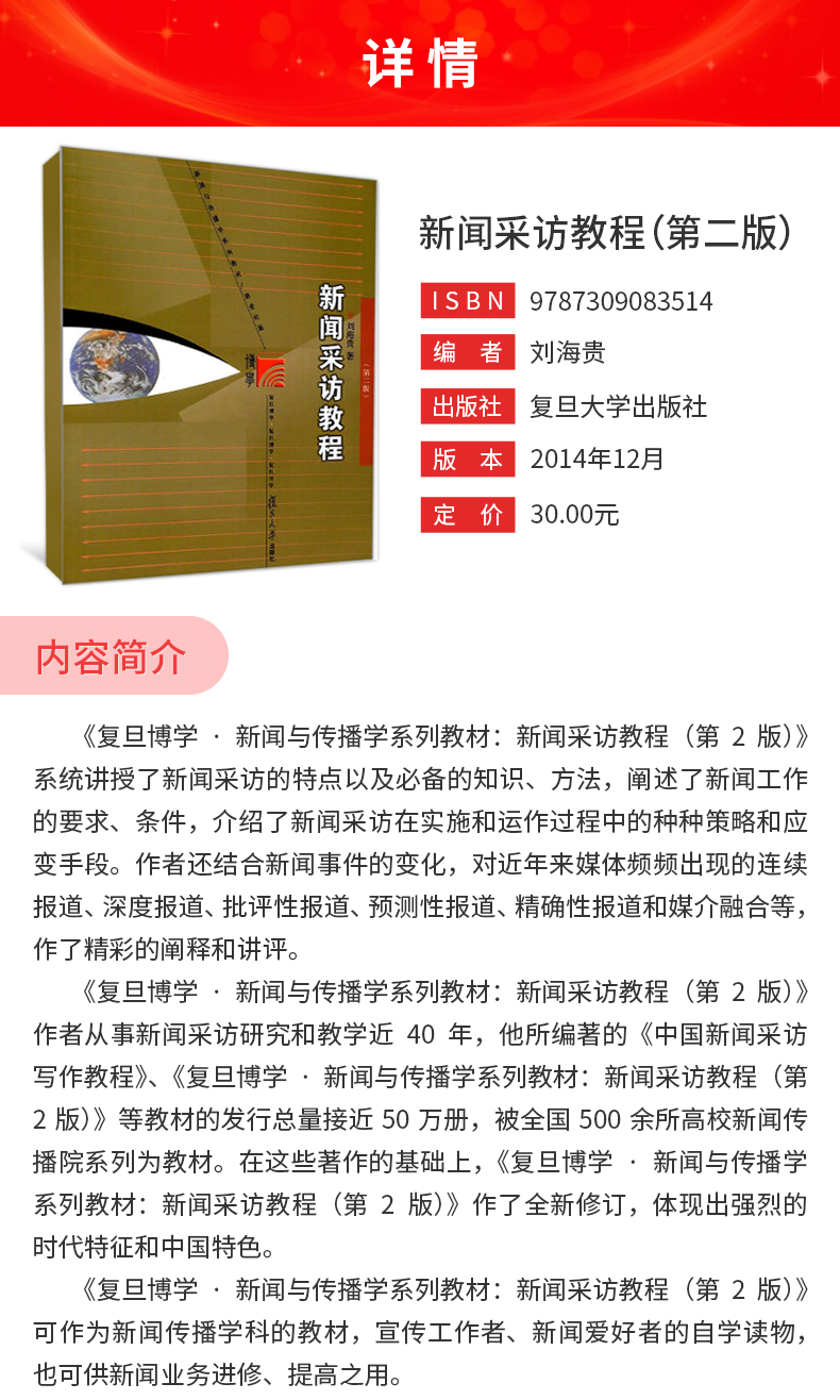 刘海贵《新闻采访教程》(第2版)教材(复旦大学出版社)