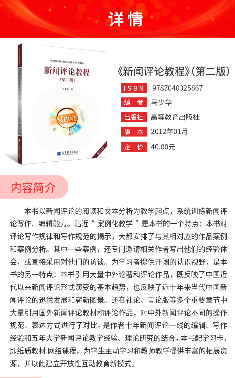 马少华《新闻评论教程》(第2版)教材(高等教育出版社)