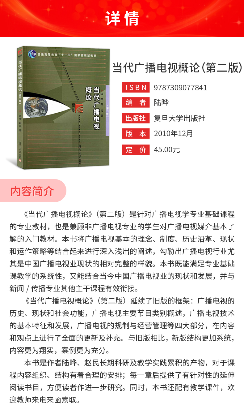 陆晔《当代广播电视概论》(第2版)教材(复旦大学出版社)