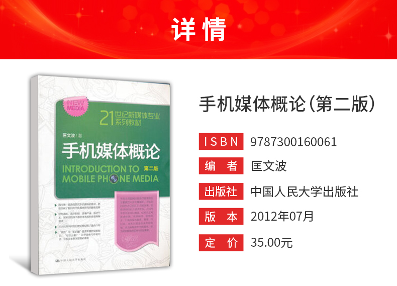 匡文波《手机媒体概论》(第2版)教材(中国人民大学出版社)