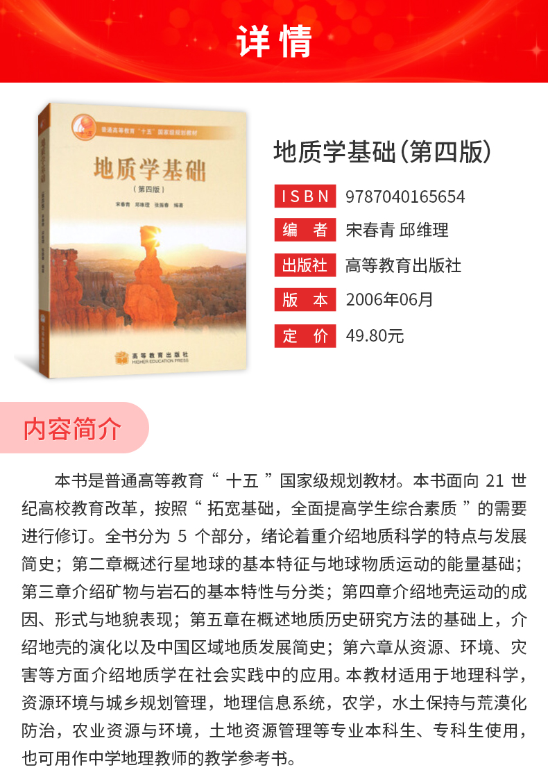 宋春青《地质学基础》(第4版)教材(高等教育出版社)