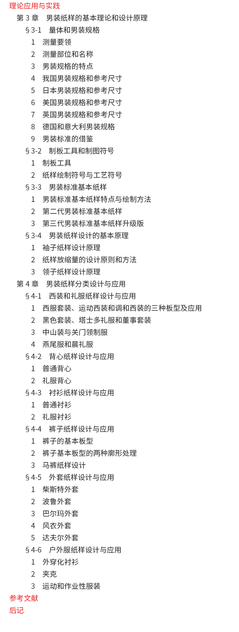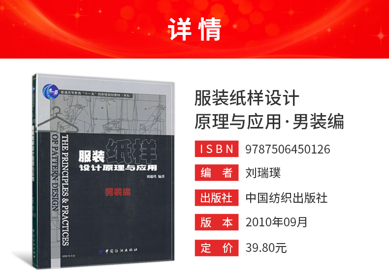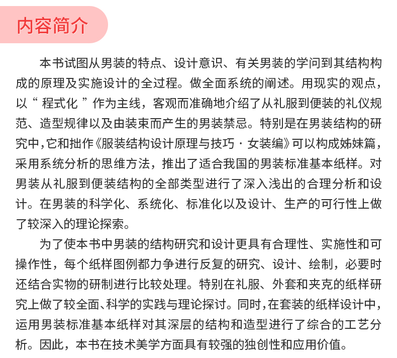 刘瑞璞《服装纸样设计原理与应用·男装编》教材(中国纺织出版社)