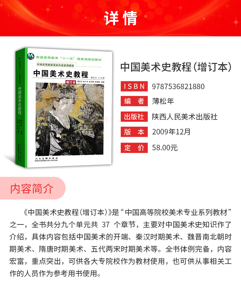 薄松年《中国美术史教程》(增订本)教材(陕西人民美术出版社)
