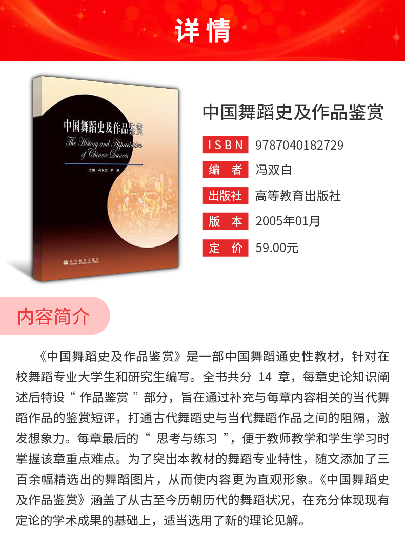 冯双白《中国舞蹈史及作品鉴赏》教材(高等教育出版社)