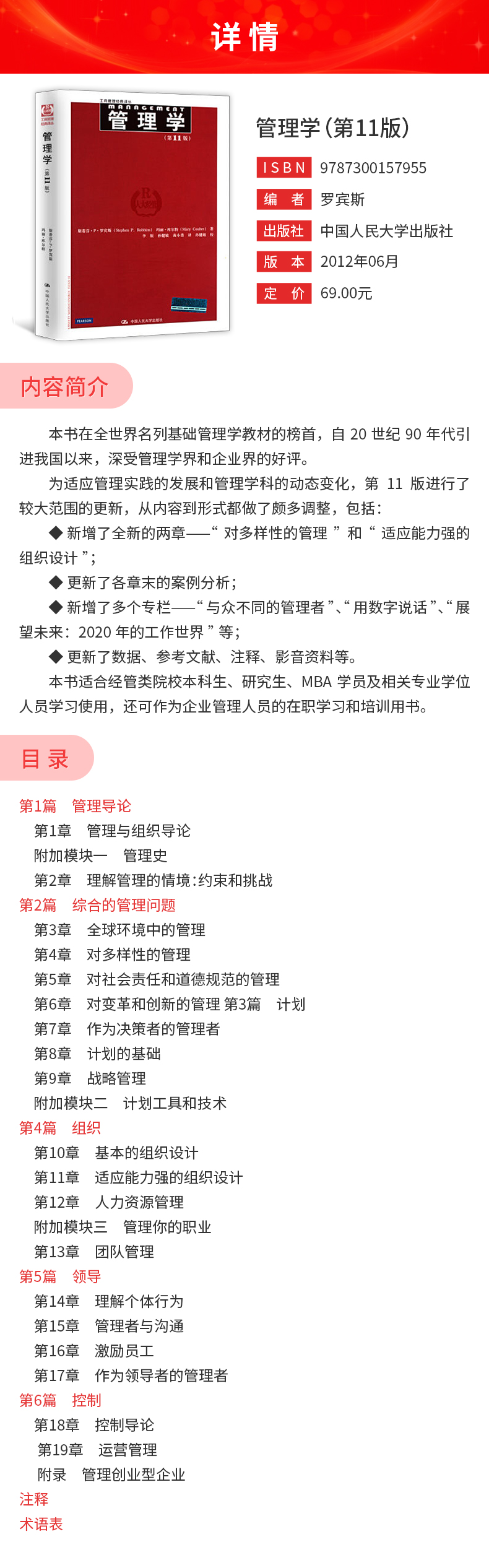 罗宾斯《管理学》(第11版)教材(中国人民大学出版社)