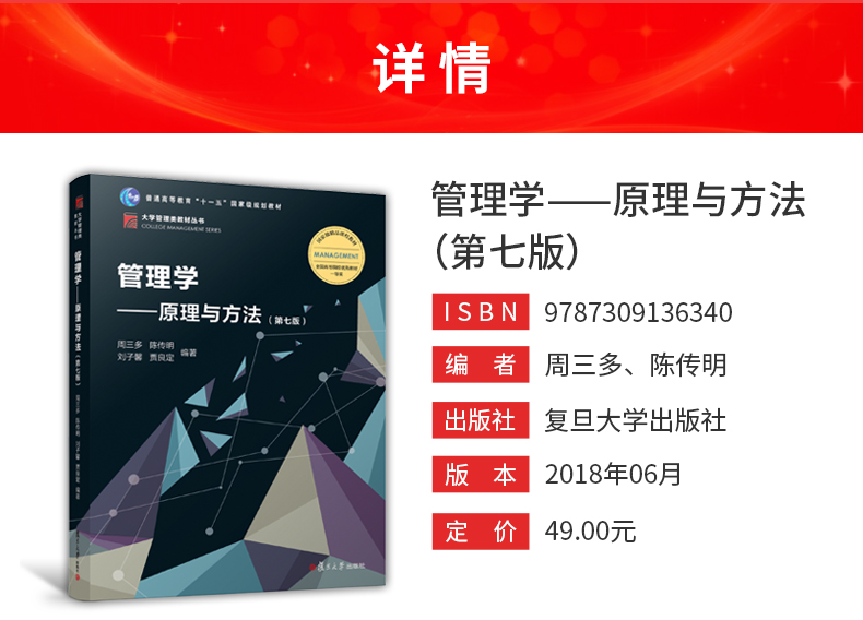 周三多《管理学—原理与方法》(第7版)教材(复旦大学出版社)