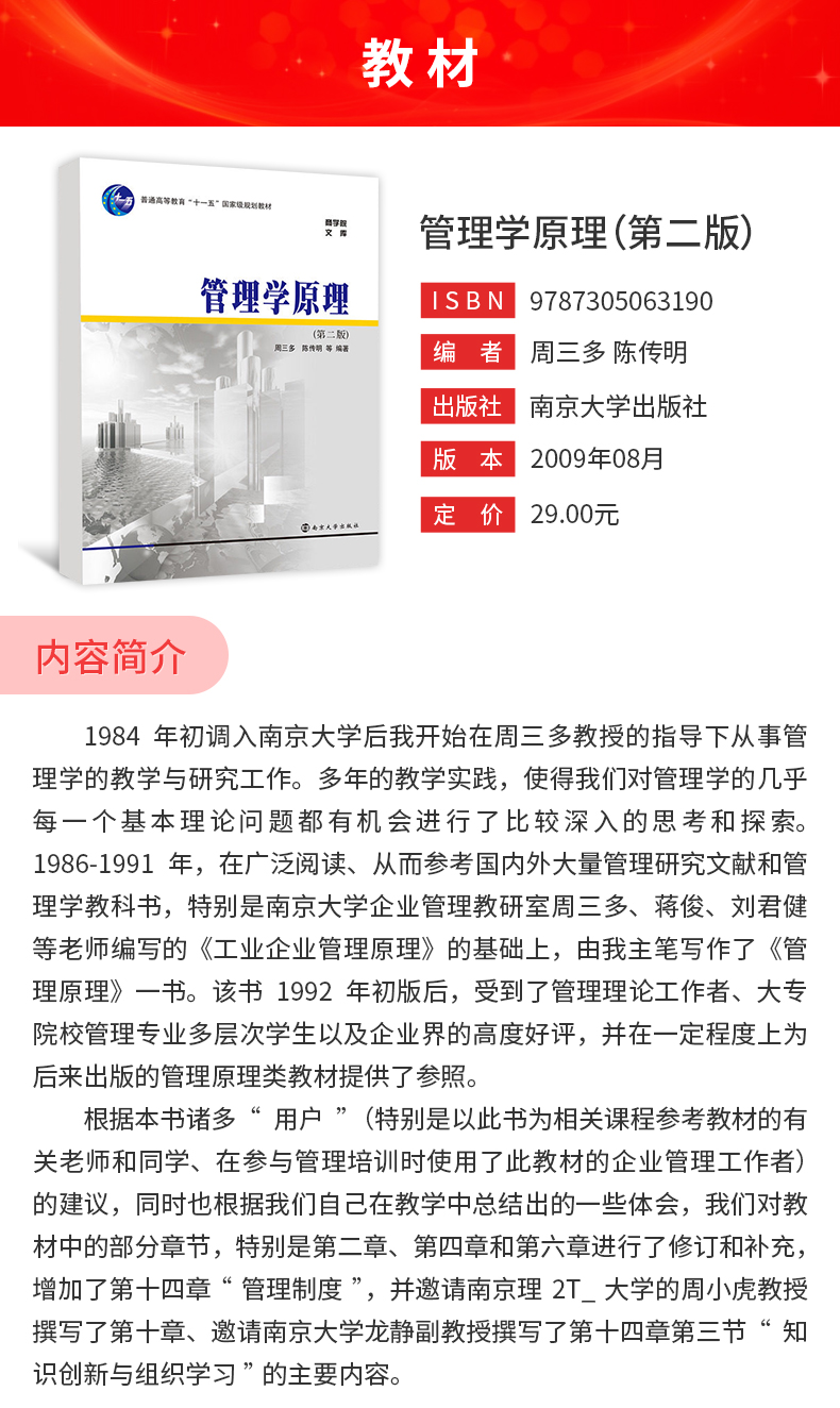 周三多《管理学原理》(第2版)教材(南京大学出版社)