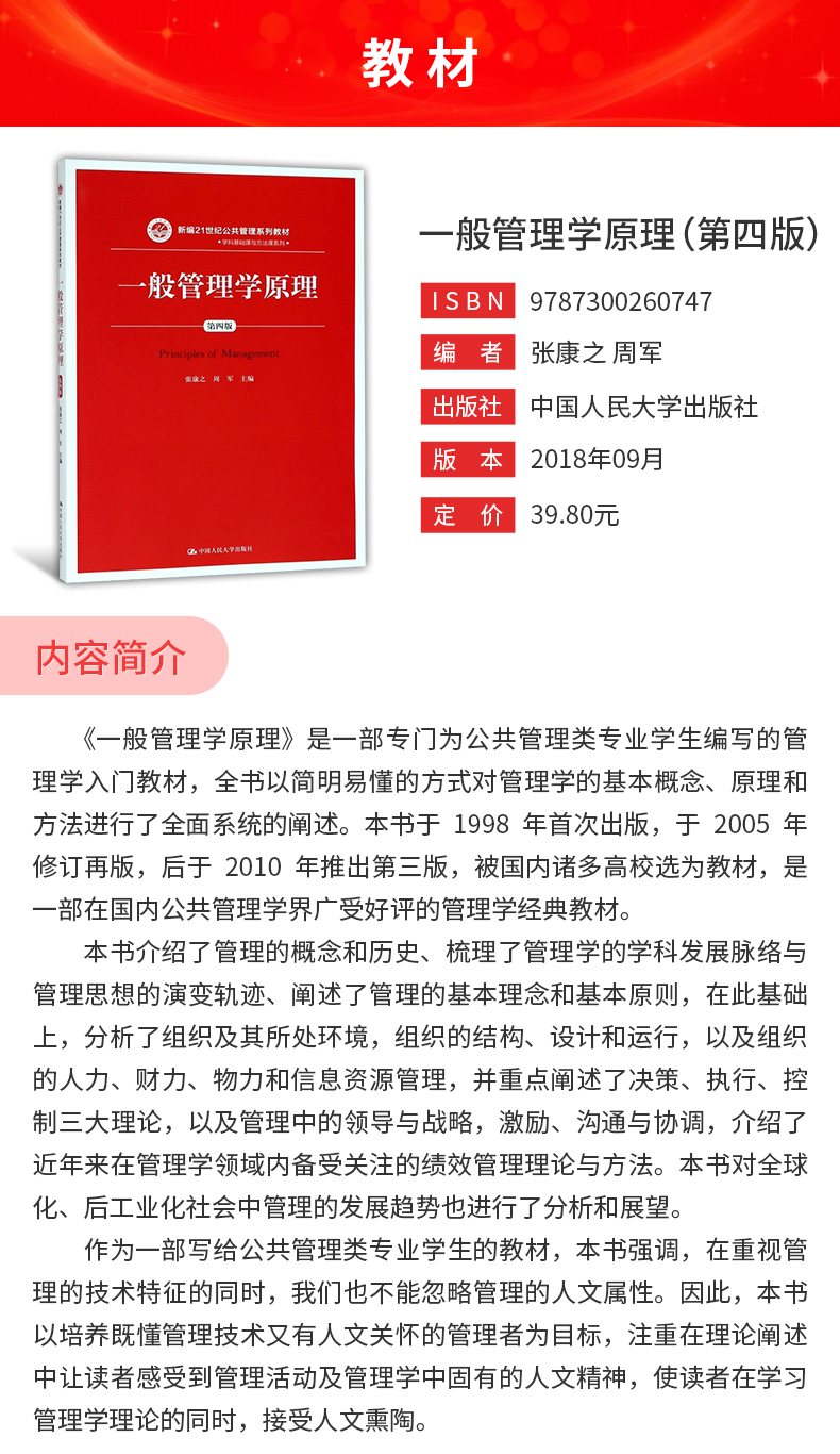 张康之、周军《一般管理学原理》(第4版)教材(中国人民大学出版社)