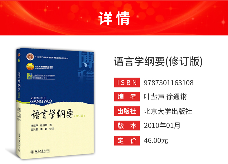 叶蜚声、徐通锵《语言学纲要》(修订版)教材(北京大学出版社)