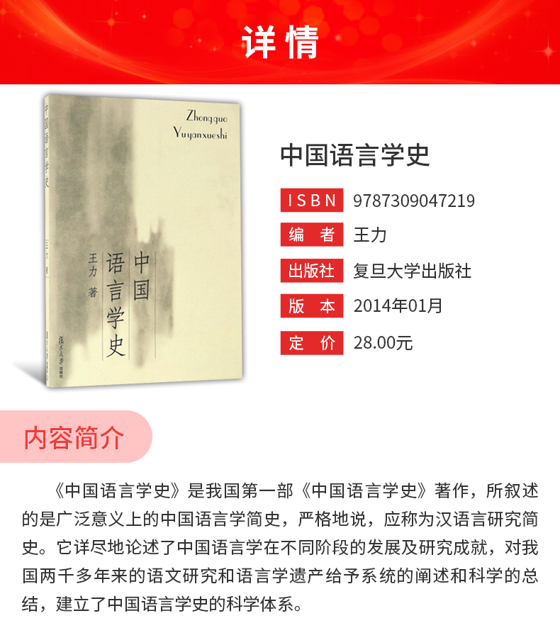 王力《中国语言学史》教材(复旦大学出版社)