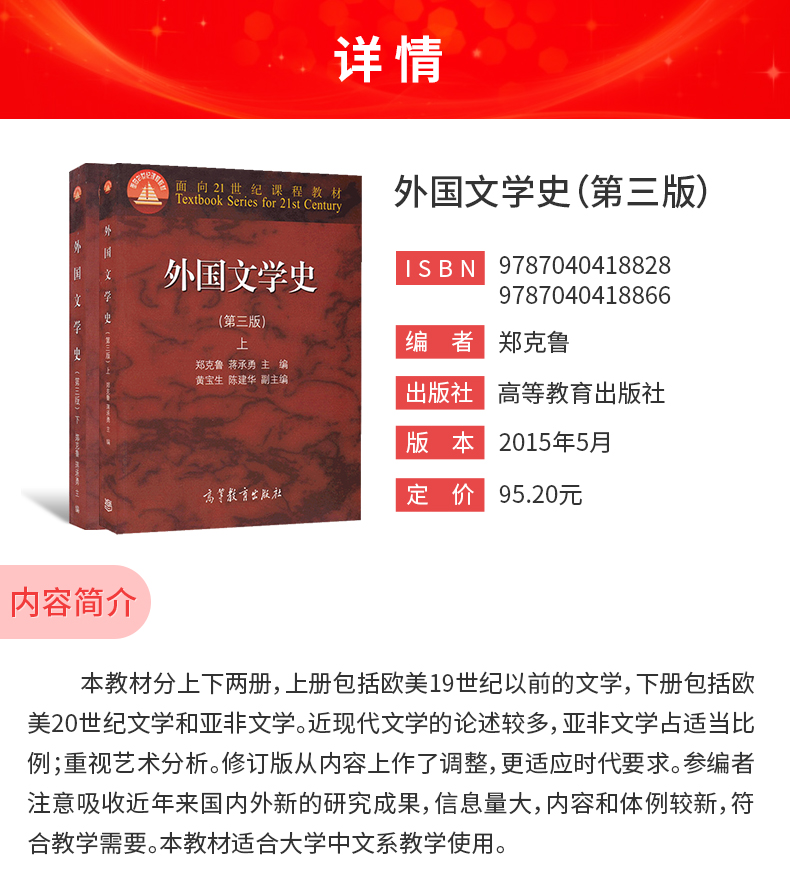 郑克鲁《外国文学史》(第3版)教材(高等教育出版社)