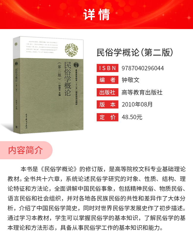 钟敬文《民俗学概论》(第2版)教材(高等教育出版社)