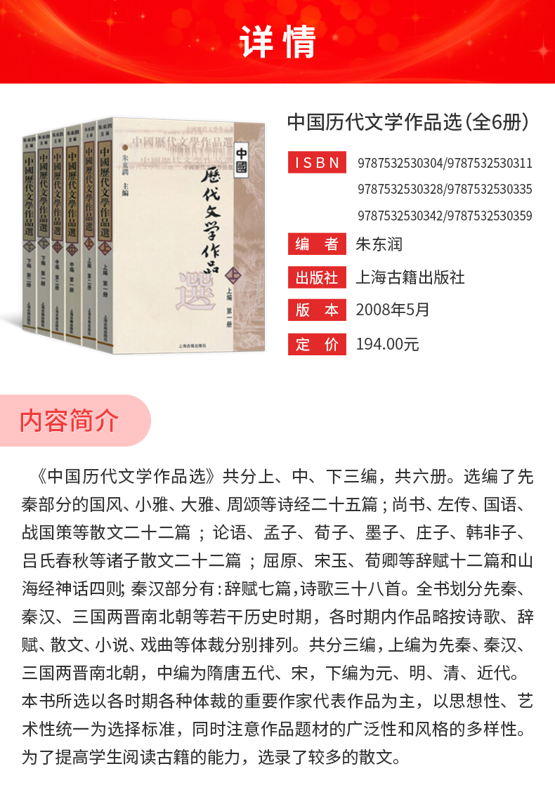 朱东润《中国历代文学作品选》教材(上海古籍出版社)