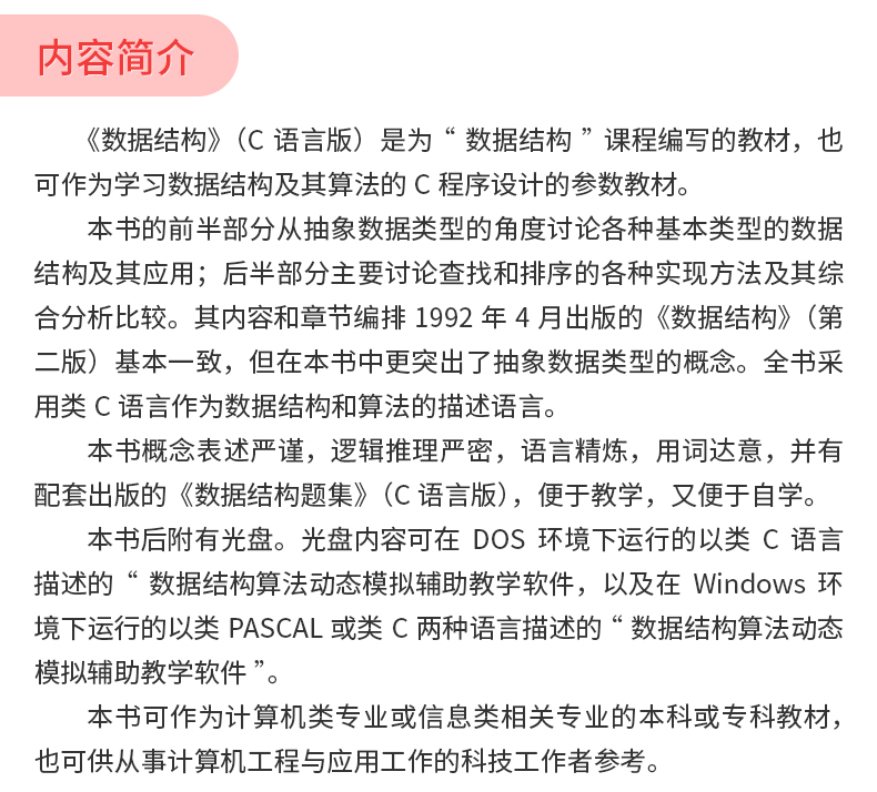 严蔚敏《数据结构》(C语言版)教材(清华大学出版社)