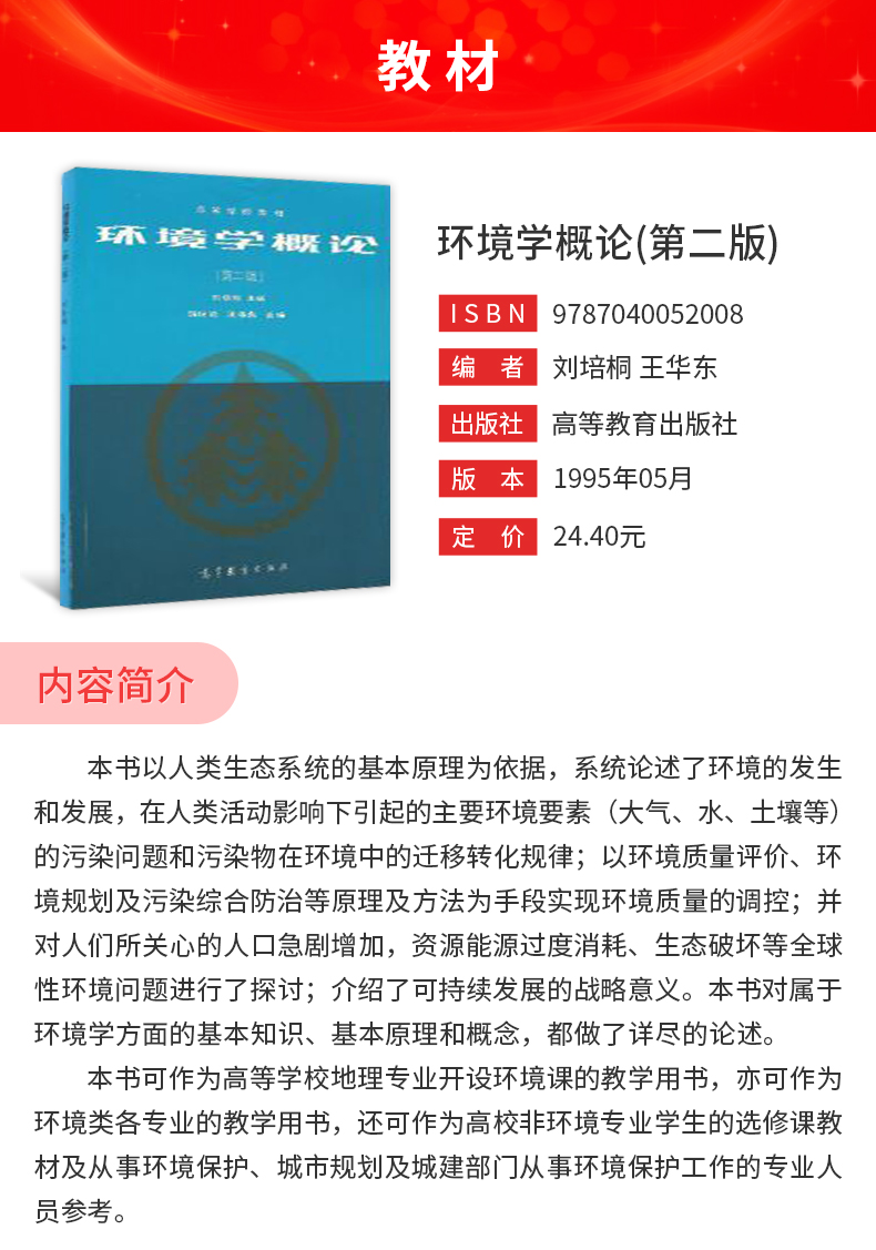 刘培桐《环境学概论》(第2版)教材(高等教育出版社)