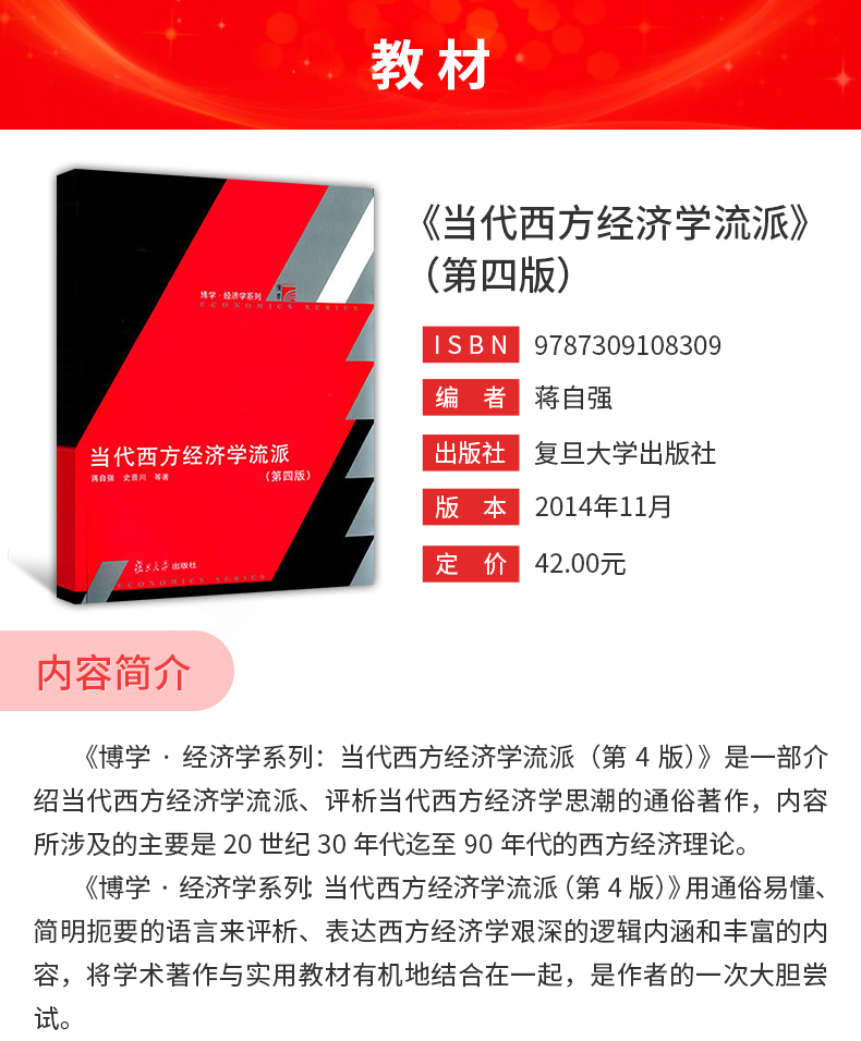 蒋自强《当代西方经济学流派》(第4版)教材(复旦大学出版社)