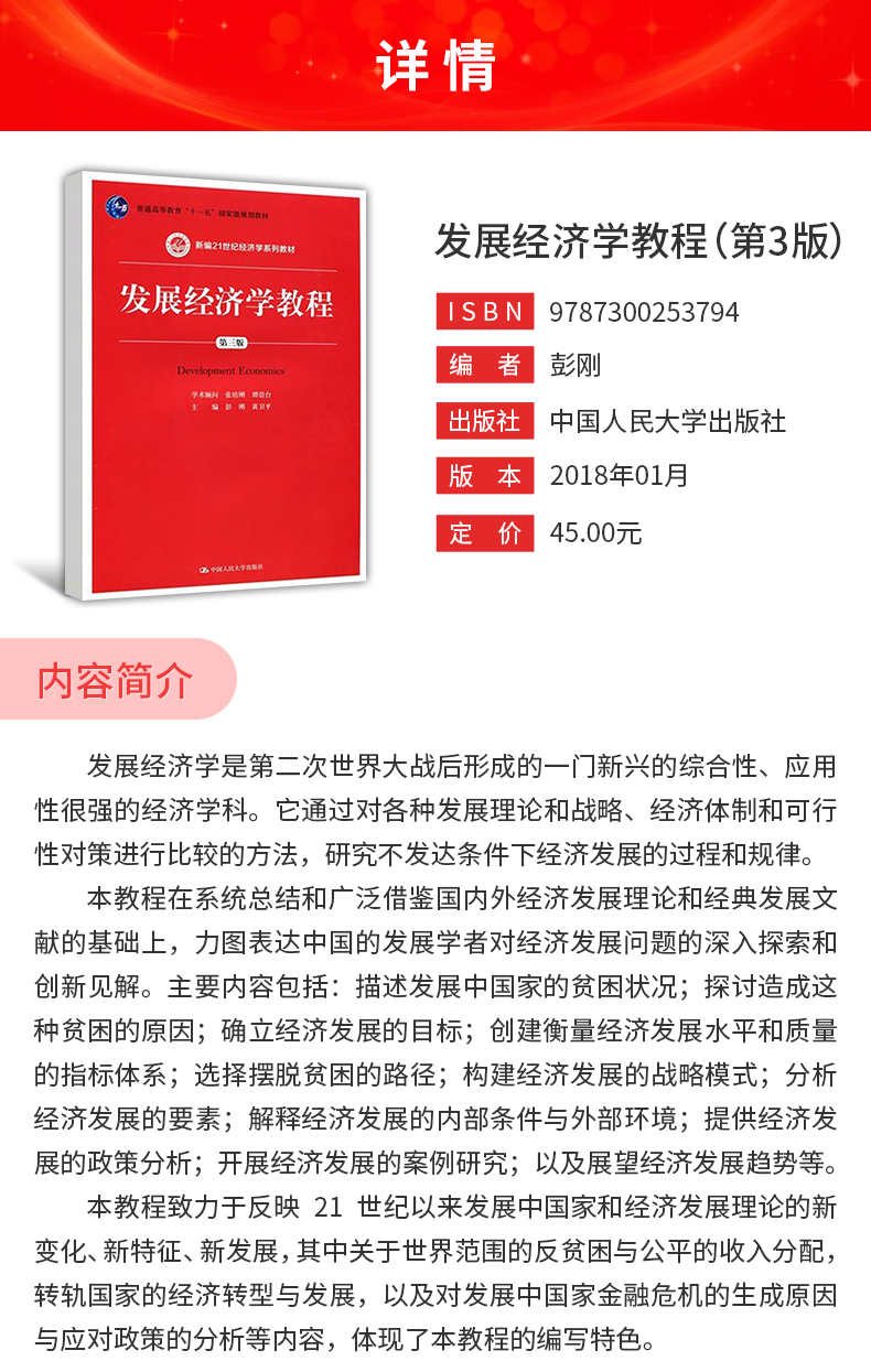 彭刚《发展经济学教程》(第3版)教材(中国人民大学出版社)