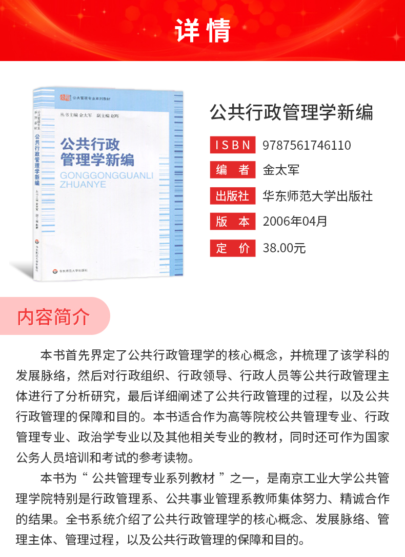 金太军《公共行政管理学新编》教材(华东师范大学出版社)