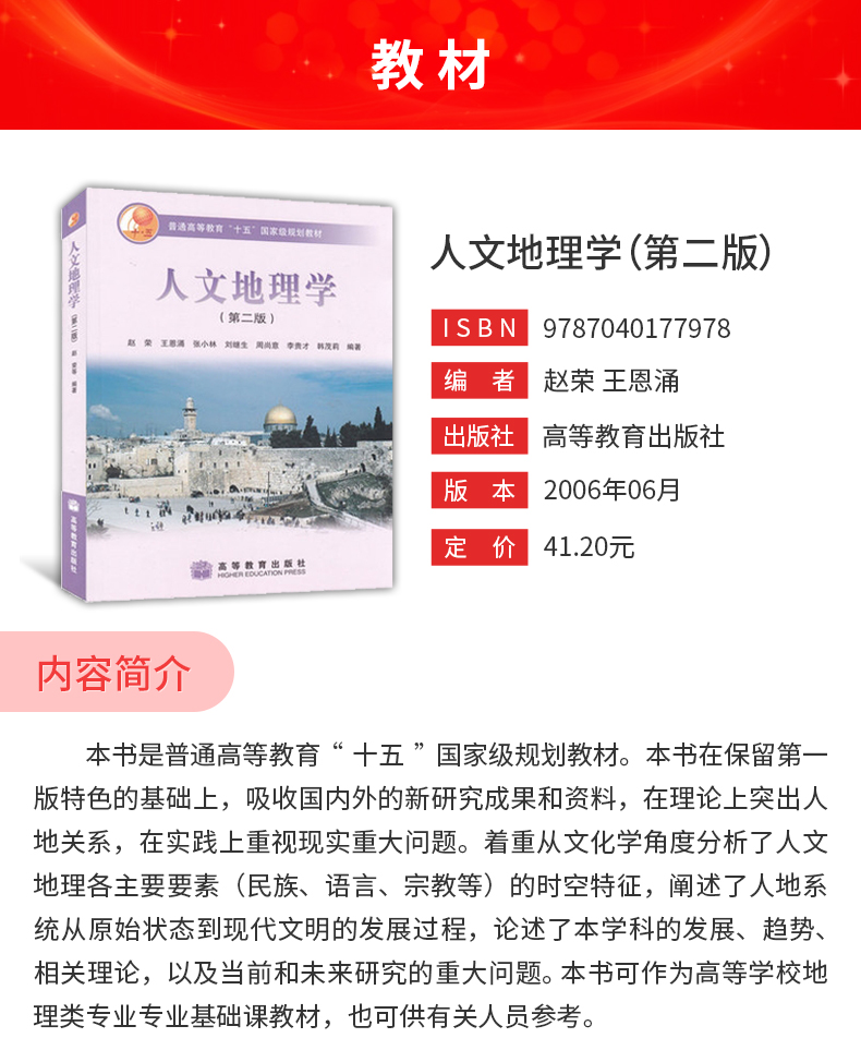赵荣《人文地理学》(第2版)教材(高等教育出版社)