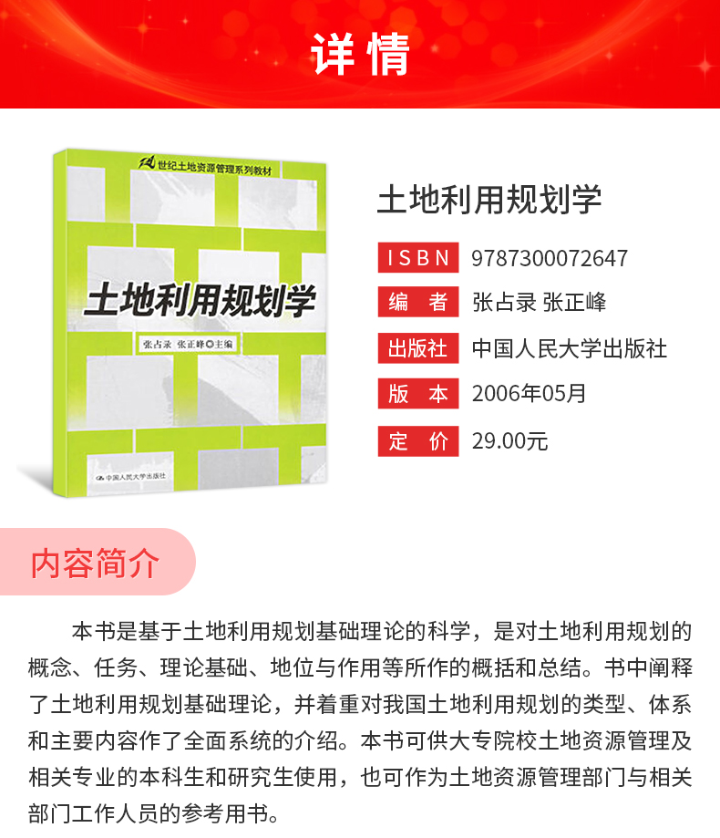 张占录《土地利用规划学》教材(中国人民大学出版社)