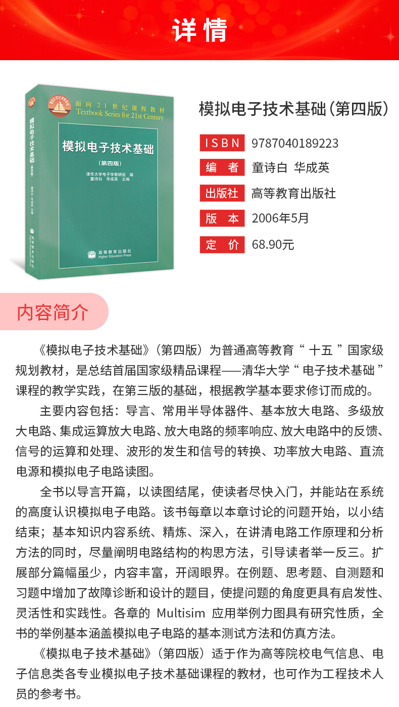 童诗白《模拟电子技术基础》(第4版)教材(高等教育出版社)