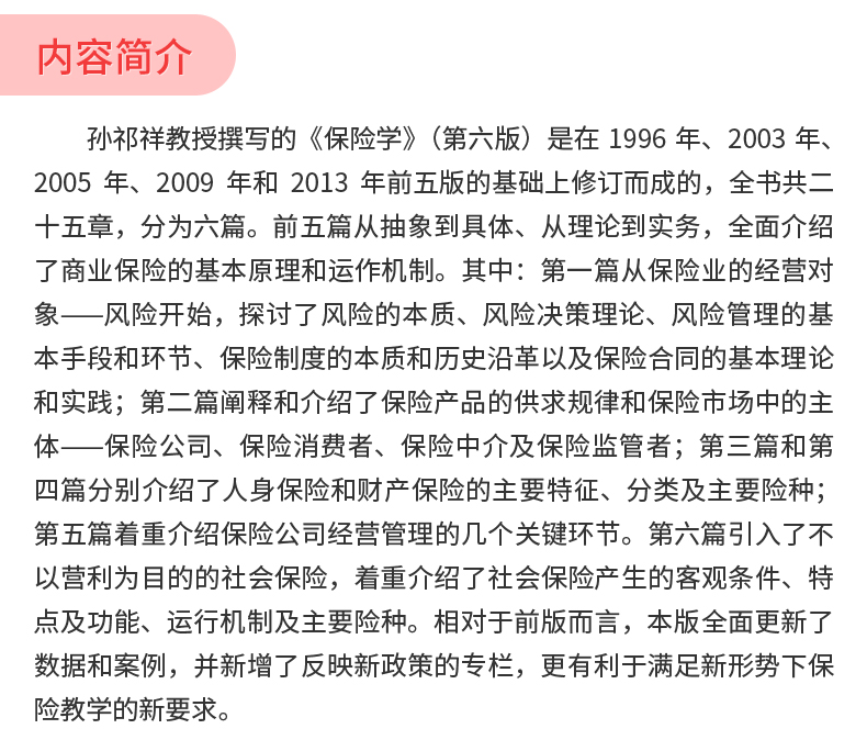 孙祁祥《保险学》(第6版)教材(北京大学出版社)