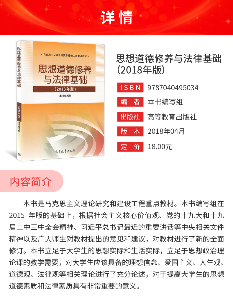 《思想道德修养与法律基础》(2018年版)教材(高等教育出版社)