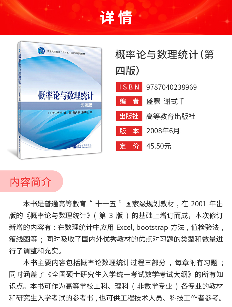 浙江大学《概率论与数理统计》(第4版)教材(高等教育出版社)