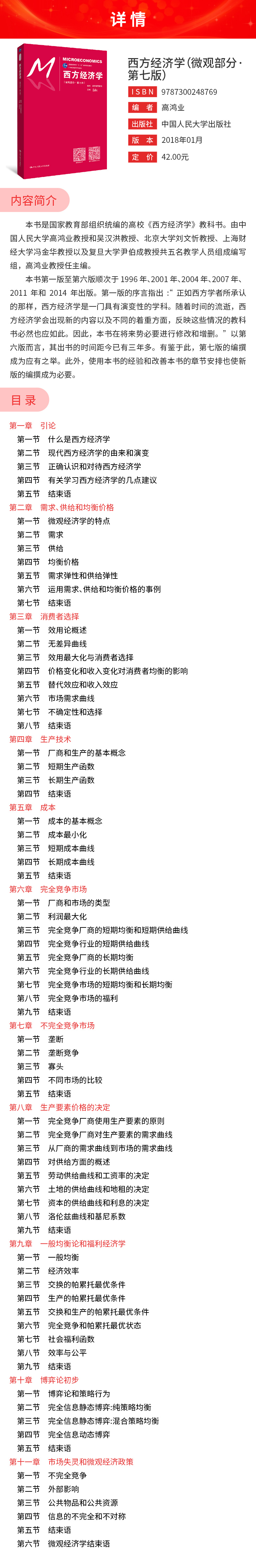 高鸿业《西方经济学(微观部分)》(第7版)教材(中国人民大学出版社)