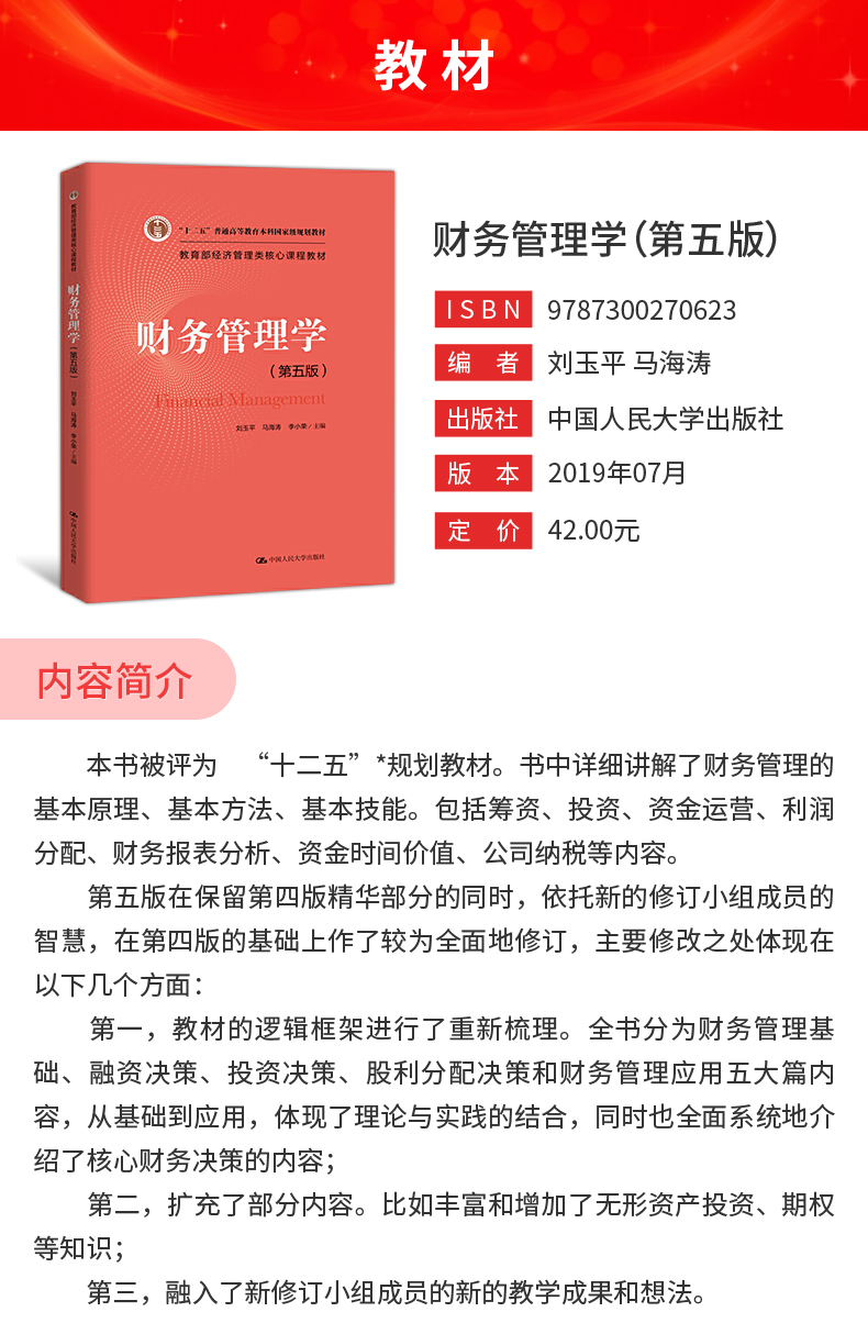 刘玉平《财务管理学》(第5版)教材(中国人民大学出版社)