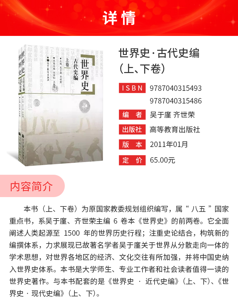 吴于廑《世界史·古代史编(上、下卷)》教材(高等教育出版社)