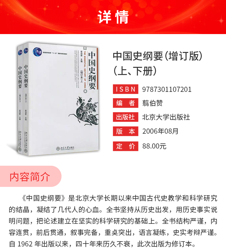 翦伯赞《中国史纲要(上、下册)》(增订本)教材(北京大学出版社)