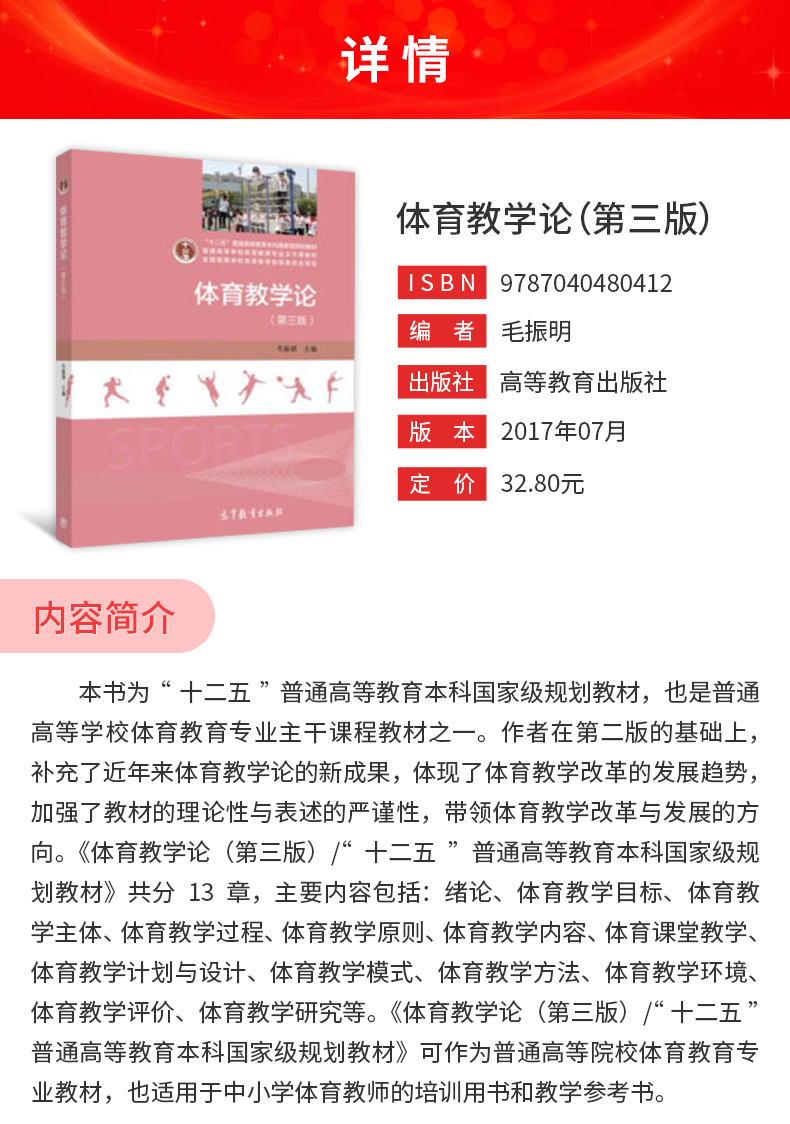 毛振明《体育教学论》(第3版)教材(高等教育出版社)