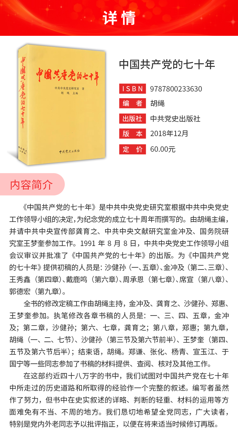 胡绳《中国共产党的七十年》教材(中共党史出版社)