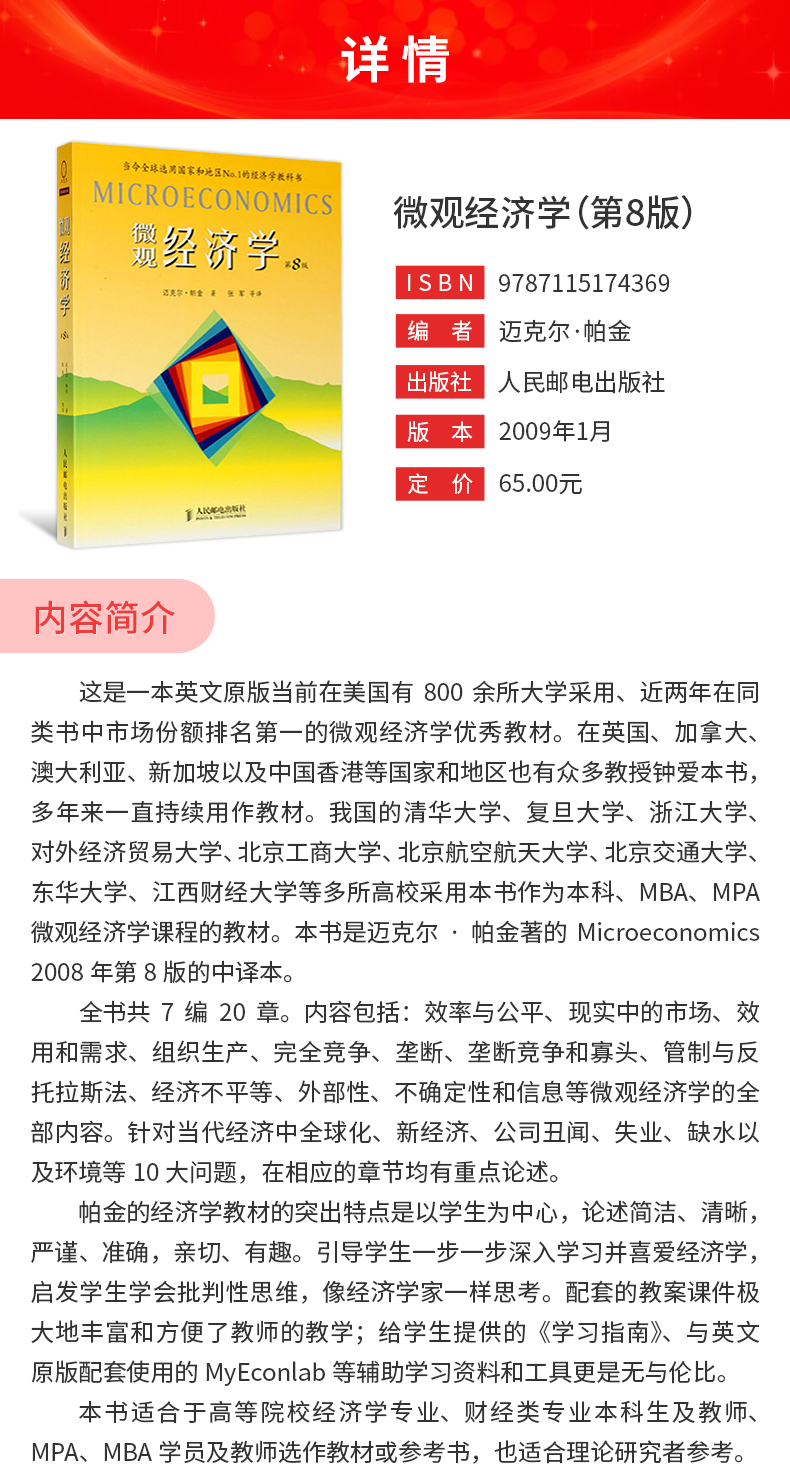 帕金《微观经济学》(第8版)教材(人民邮电出版社)