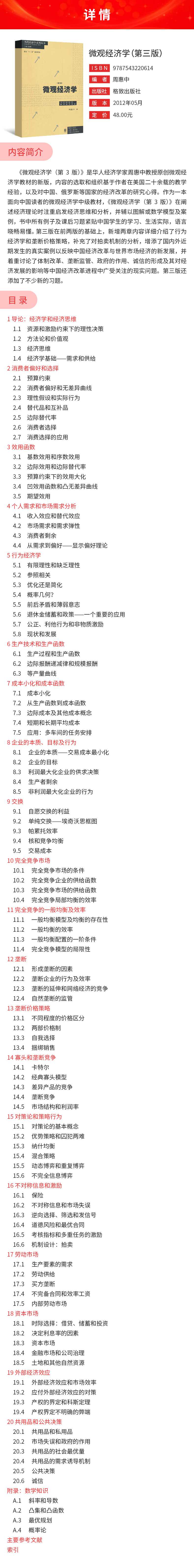 周惠中《微观经济学》(第3版)教材(格致出版社)
